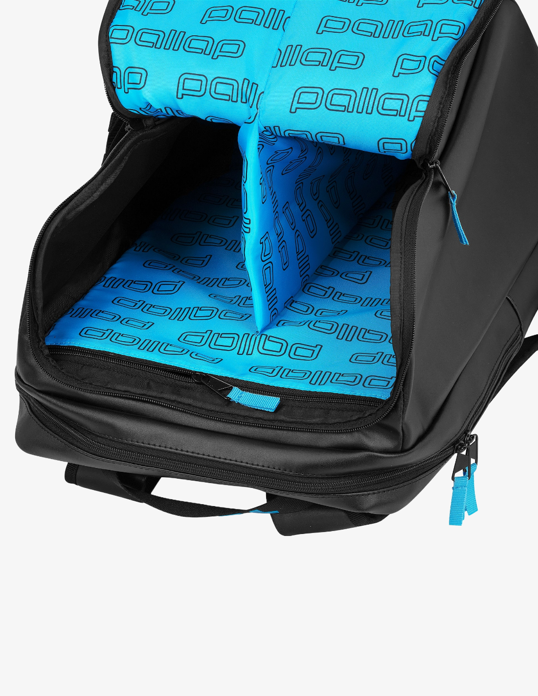 La mochila técnica de viaje definitiva - bolsillo delantero con varios compartimentos para llevar el calzado, accesorios, ropa y un bolsillo independiente para el ordenador - bolsillo trasero para llevar 2 raquetas de pádel - bolsillos interiores pequeños para el teléfono, las llaves u otros objetos - parte trasera de malla para mayor comodidad.
